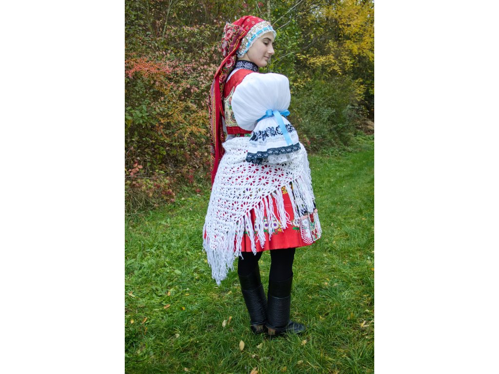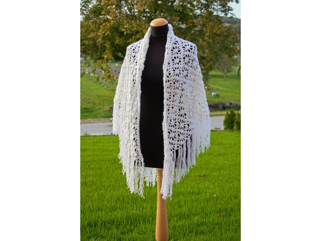 Rozměry: 170 cm na horní straně, 80cm v cípu + třásně